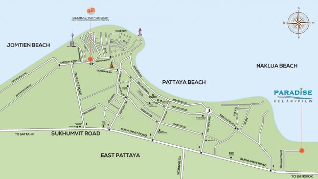 PARADICE OEAN VIEW PATTAYAは2013年完成のデベロッパーGOLDN TOP GROUPによる7階建て44ユニットからなる低層型コンドミニアムです。 全室オーシャンビューのユニットとなり広めのベランダからは素敵な景色が広がります。お部屋のタイプは1ベッドルーム、2ベッドルーム。ノースパタヤまで10km,スクンビット通りまで600m。
