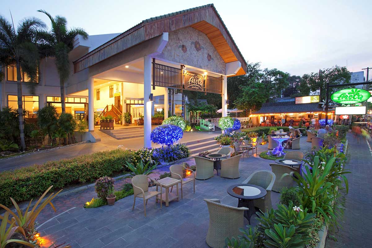 アレカロッジは、ナイトライフ愛好家のための中級ホテルです。パタヤで夜遊びを楽しみたい方におすすめです。セカンドロードとソイ・バフ・カオの間に位置し、LKメトロやセントラルフェスティバルなどのエンターテイメント施設が立ち並ぶ便利なホテルです。
